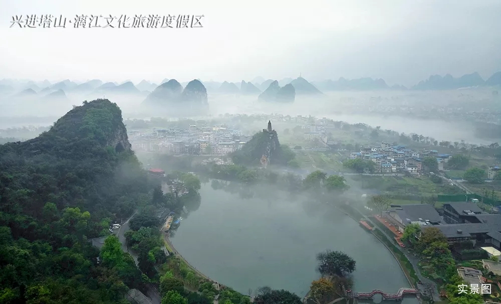宅家日久,被拖延的踏春之旅,便從這迷蒙中開(kāi)啟。沿著漓江下行,云霧籠罩的興進(jìn)塔山·漓江文化旅游度假區(qū)變得格外迷人,遠(yuǎn)處的塔山若隱若現(xiàn),江畔綠意朦朧,青山、云霧、綠樹(shù)、翠竹連成一片。